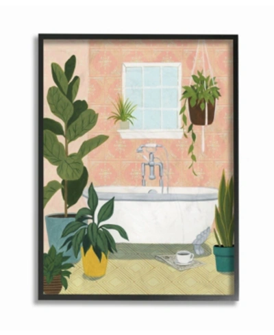 STUPELL INDUSTRIES Peach Walls Bathroom Oasis Scene With Fiddle Leaf Plants Framed Texturized Art, 16" L X 20" H In Multi
