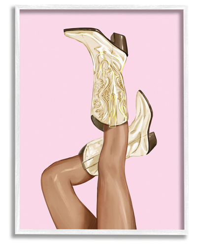 STUPELL Pink Country Cowgirl Boots Framed Giclee Wall Art By Ziwei Li
