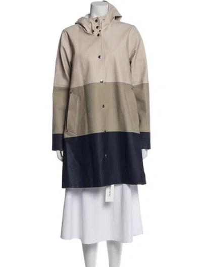 Stutterheim Coat Neutrals Colorblock Pattern With Hood Stand Collar Knee-Length Fit: Coats by Stutterheim typically fit true to size. | Stutterheim Colorblock Pattern Coat in Neutrals, Women's S