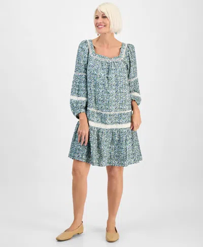 Style & Co lends a little romance to your look with this petite cotton dress designed with a floral-inspired print and pretty crochet trim.