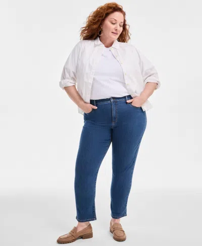 STYLE & CO Plus Size High-rise Cropped Straight-leg Jeans, Exclusively At Macy's In Medium Light