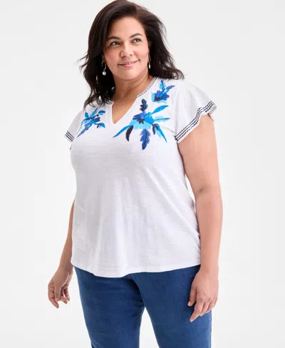 STYLE & CO Plus Size Printed Flutter-sleeve Top, Exclusively At Macy's In White