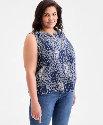 STYLE & CO Plus Size Printed Tank Top, Exclusively At Macy's In Blue