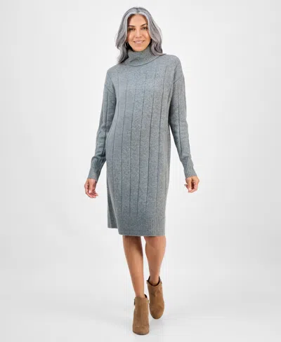 STYLE & CO Women's Ribbed Turtleneck Sweater Dress, Macy's Exclusive In Gray