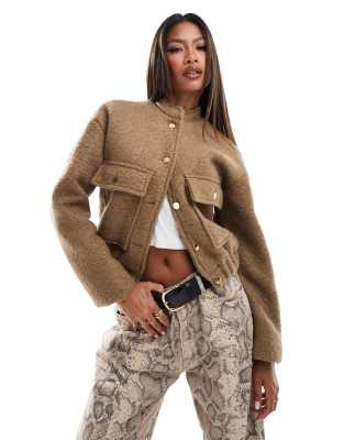 STYLE CHEAT Boucle Bomber Jacket In Khaki-neutral