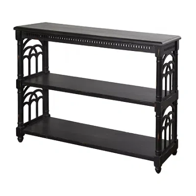 This three tier console table serves as the ideal centerpiece in your living room, foyer, or bedroom. Crafted from a combination of woods, this table is the perfect choice to showcase your pictures and home decor trinkets. The all-black finish with distressing, will complement any existing decor.Bring more storage space into your hallway, bedroom or living room with this three tier console table. The distressed all-white finish matches almost any existing decor aesthetic. Constructed from a combination of MDF, wood veneer, and fir wood, this piece will bring style and function for years to come.Features: Quick ShipShape: RectangleTools Required: Screws (included), Allen Wrench (included)Table Measurements: 47.25 Width/Inches, 33 Height/Inches, 14 Length/InchesWeight (lb.): 33 LbAssembly: Assembly RequiredBase Material: 100% VeneerFinish: PaintedTop Material: WoodCare: Wipe CleanDecor Styles: ContemporaryMaterial: WoodFolding: NoTable Style: Console TablesCountry of Origin: Imported