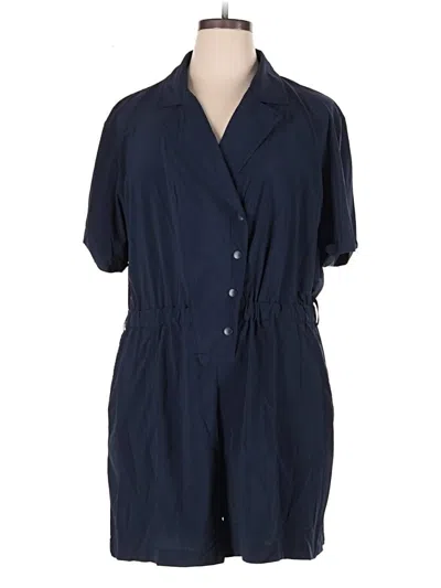 Stylus Romper, Size: 2X-Large. Item Details: Blue, Solid Pattern, Collared Neckline, Short Sleeve, Ruched, Women's Dresses, Polyester/Spandex