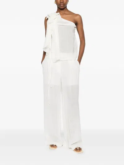 white ruffle detail tie detail sleeveless tonal stitching gathered detail