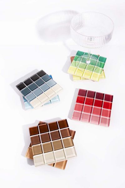 Multi-purpose tile coasters that are unique under your cups and are handy for any occasions. Can be used as regular coasters, jewelry display, item storage, or photography props.Content + Care We use high-quality tiles that can handle high temperatures well. There're felt pads at the bottom to prevent scratches and slipping. Coasters are handcrafted, so the finish may differ slightly. Colors may vary slightly due to different screens/monitors. Do not submerge in water or dishwasher. Simply clean them by using a damp cloth, wipe again with a dry cloth, and let them dry in the shade. Made in the USASize + Fit 3 7/8in x 3 7/8in x 0.5in