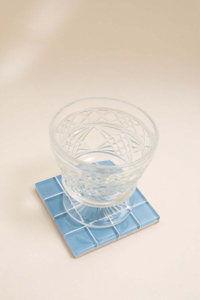 SUBTLE ART STUDIOS Solid Glass Tile Coaster In Sky