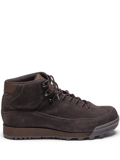dark-brown suede upper lace-up fastening padded collar rubber sole mid-top design