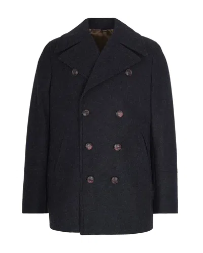 Suithomme presents a distinguished double-breasted coat crafted from a premium wool blend. This piece showcases a striking large notch lapel collar, welt side pockets, and a sophisticated button closure with decorative buttons. Its structured silhouette and clean back finish embody timeless elegance, making it a coveted addition to any refined wardrobe. 80% wool, 20% polyamide First lining - 100% polyester Second lining - 51% acetate, 49% viscose Dry clean only Made in Italy