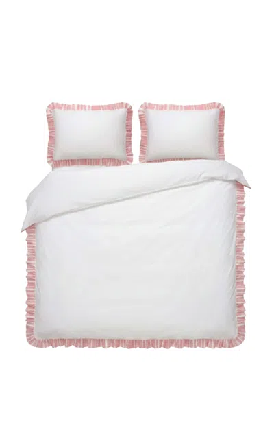 Designed by Sukun in collaboration with Studio Raff; the Marshmallow Stripe Bundle Set features soft pink and white stripes finished with delicate ruffled edges. Crafted from lustrously soft cotton with a subtle sheen; it offers a smooth; breathable feel and an understated sense of luxury. A romantic yet considered design; bringing warmth; softness; and gentle whimsy to the bedroom.Set Includes- 1 × Duvet Cover- 4 × Standard Pillowcases- 1 × Deep Fitted SheetDetails- Made from buttery-soft cotton sateen- OEKO-TEX® Standard 100 certified- Pillowcases feature a central envelope closure- Duvet cover finished with concealed button closure- Deep fitted sheet with elasticated edges for a secure fit