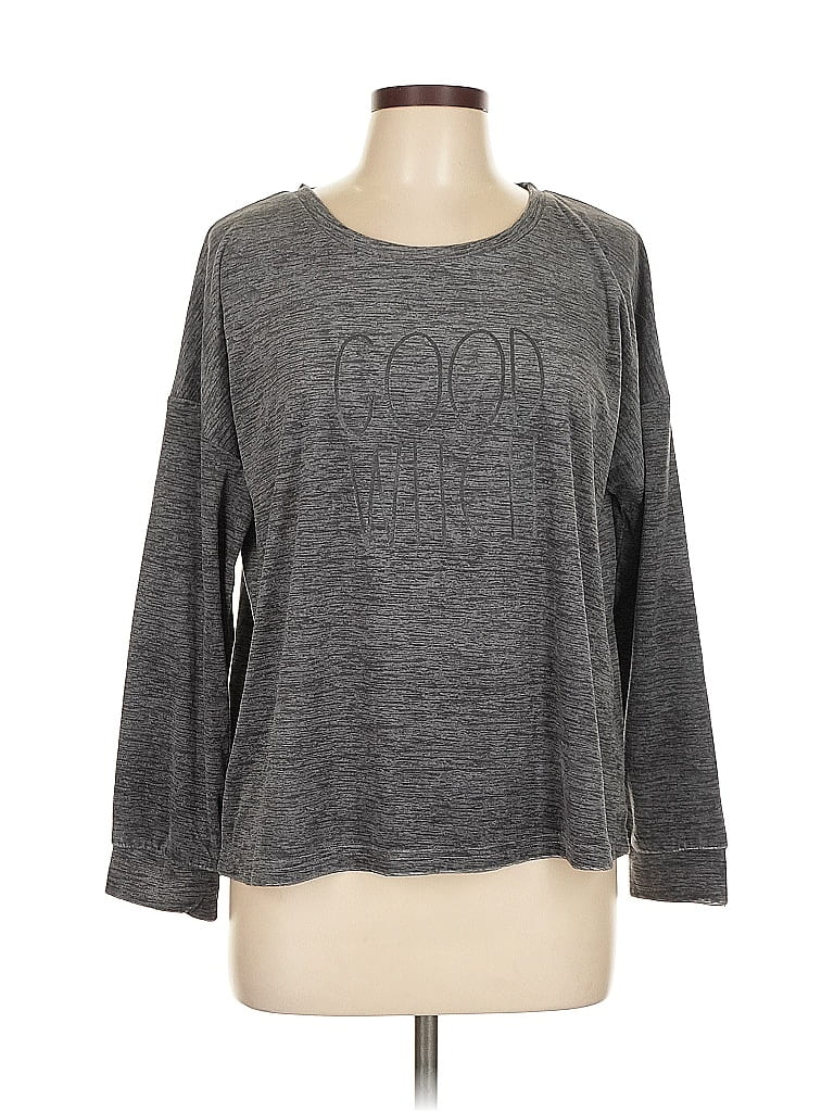 Summer Mae Pullover Sweater, Size: Large. Item Details: Gray, Scoop Neck, Long Sleeve, Women's Tops, Polyester/Spandex