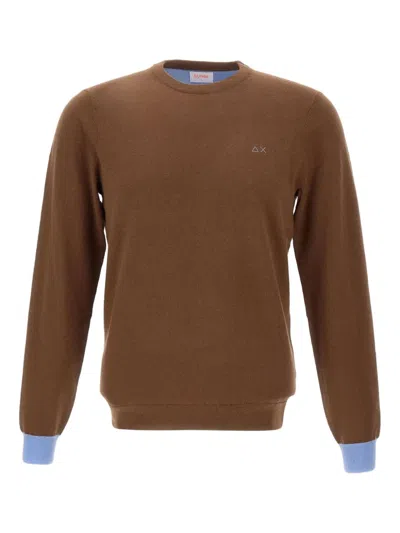 SUN 68 Elbow-patch Crew-neck Sweater In Brown