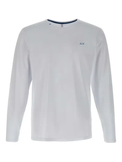 white crew neckline logo detail to the chest long sleeves stitched hem