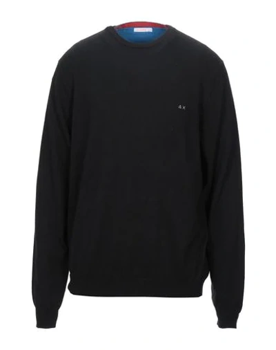 SUN 68 Sweaters. knitted, logo, lightweight knit, round collar, solid color, long sleeves, no pockets. 50% Wool, 50% Cotton