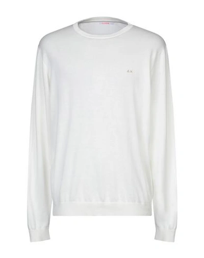 SUN 68 Sweaters. knitted, logo, solid color, round collar, lightweight sweater, long sleeves, no pockets. 100% Cotton
