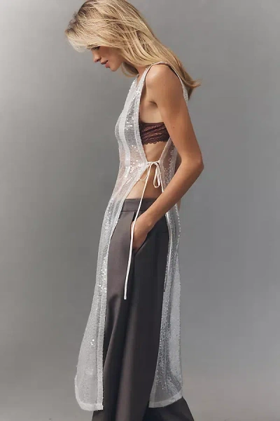 SUNDAY IN BROOKLYN Sheer Sequin Side-tie Tunic Top In White