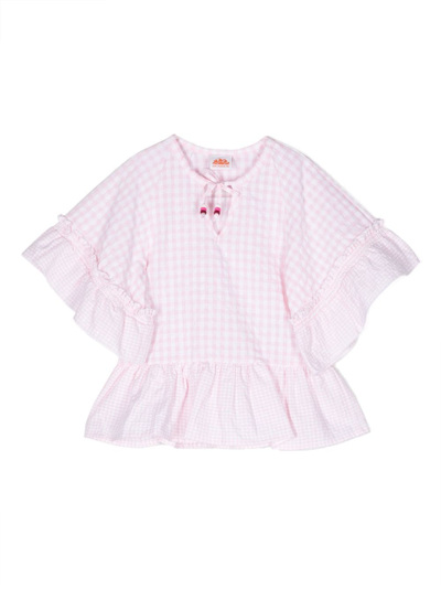 SUNDEK Kids' Check-pattern Ruffled Blouse In Pink