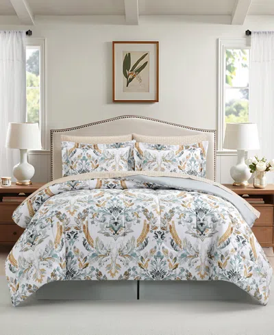 Add a charming touch to your bedroom with the gold and sage damask print Catherine comforter set.