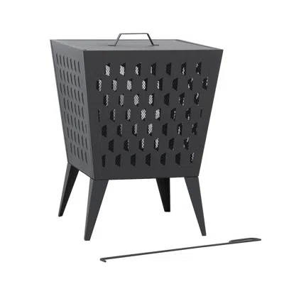 Introducing Sunjoy's Hartefeld Fire Pit - your ultimate outdoor companion for cozy comfort. This backyard fire pit is easy to assemble and boasts strong four support frames that enhance stability, making it adaptable to uneven ground. Crafted from powder-coated steel with a high-temperature-resistant coating, it ensures durability and long-term use. Ventilation hole promotes better airflow, resulting in bigger flames and a more consistent fire. Included poker and lid allow you to safely manipulate wood, providing a safer experience. The PVC package also ensures your wood burning fire pit will stay protected in outdoor conditions.