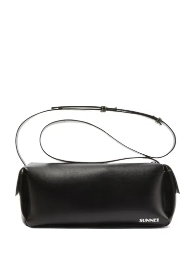 black calf leather smooth grain top zip fastening silver-tone logo plaque adjustable shoulder strap two side flap pockets internal logo patch main compartment