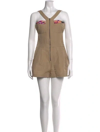Pre-owned V-neck Romper In Neutral