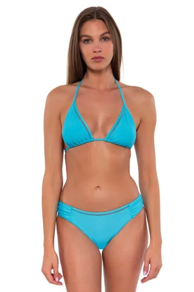 The Laney Triangle is the same fit as our best-selling Starlette Triangle, but with an added ladder trim detail that brings exciting elevation to the classic look. This top features soft, stretchy spaghetti straps with adjustable neck and back tie closures. Our extended sizes are equipped with powermesh, a double row of spaghetti at the underbust, and wider, softer neck and back ties. Triangle Halter Top: A flattering classic with a modern twist. Find Your Perfect Fit: Now in a range of sizes from Small (B cup) to E cup. Ladder Trim Detail: Adds a touch of trendy sophistication to your look. Adjustable Fit: Featuring removable cups and spaghetti ties. Extra Support for D+ Cup: With powermesh, wide straps, and two underbust straps. Moderate Coverage: An iconic and versatile silhouette. Bottom Sold Separately: Mix and match with our flattering swim bottoms-the possibilities are endless! Fabric Content: 87% Recycled Nylon, 13% Spandex