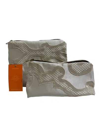 SUNSETS OF NAPLES Make Up Bags Set In Cream Print In Gray