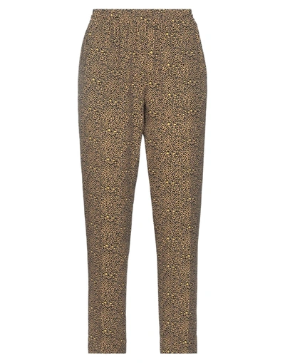 crepe, leopard-print, no appliqués, high waisted, regular fit, straight leg, elasticized waist, multipockets , Color: Brown , Size: 4