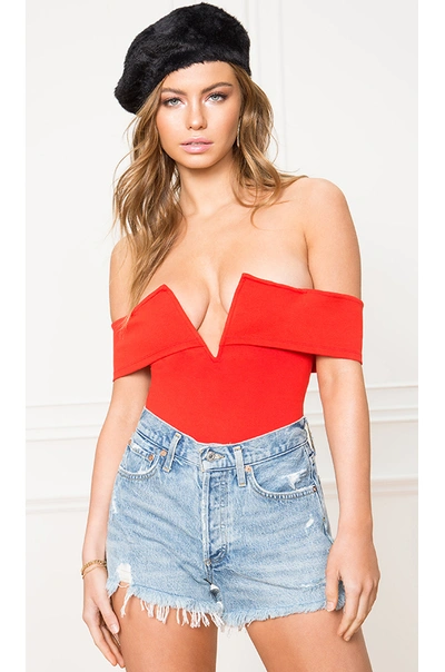 SUPERDOWN Aaliyah Deep V Bodysuit In Cherry Red