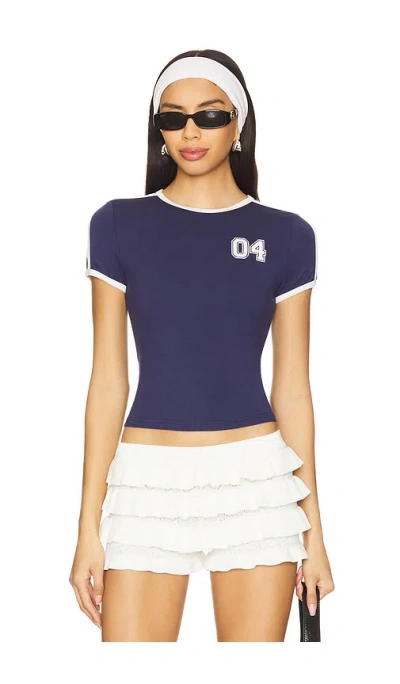 superdown Darya Top in Navy. - size XS (also in L, M, S, XL, XXS) superdown Darya Top in Navy. - size XS (also in L, M, S, XL, XXS) 95% viscose 5% elastane. Made in China. Hand wash cold. Pull-on styling. 04 graphic on left chest. Trim on neckline and sleeves. SPDW-WS2099. SDS2912 S25. superdown is a contemporary label offering on-demand, on-trend, on-social apparel. Always on the pulse of the latest styles, superdown is the go-to for aspiring, trendy, fashion-loving babes who are #superdown for anything.