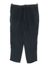 navy blue elasticated waistband drawstring fastening back jetted pockets side slash pockets