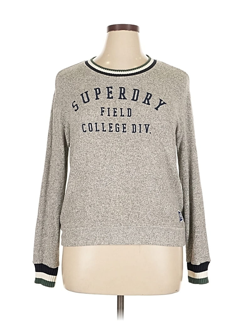 Superdry Pullover Sweater, Size: X-Large. Item Details: Gray, Crew Neck, Long Sleeve, Glitter, Women's Tops, Viscose/Polyester/Elastane