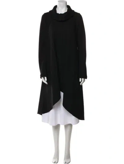 Superfine Wool Coat Black Stand Collar Long | Superfine Wool Coat in Black, Women's M