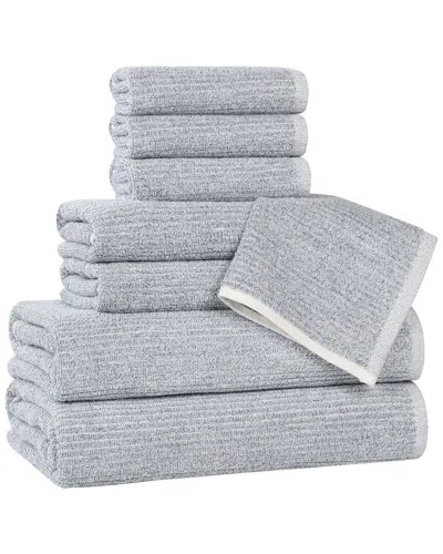 Superior Destin Medium Weight Solid Ribbed 8pc Towel Set In Blue
