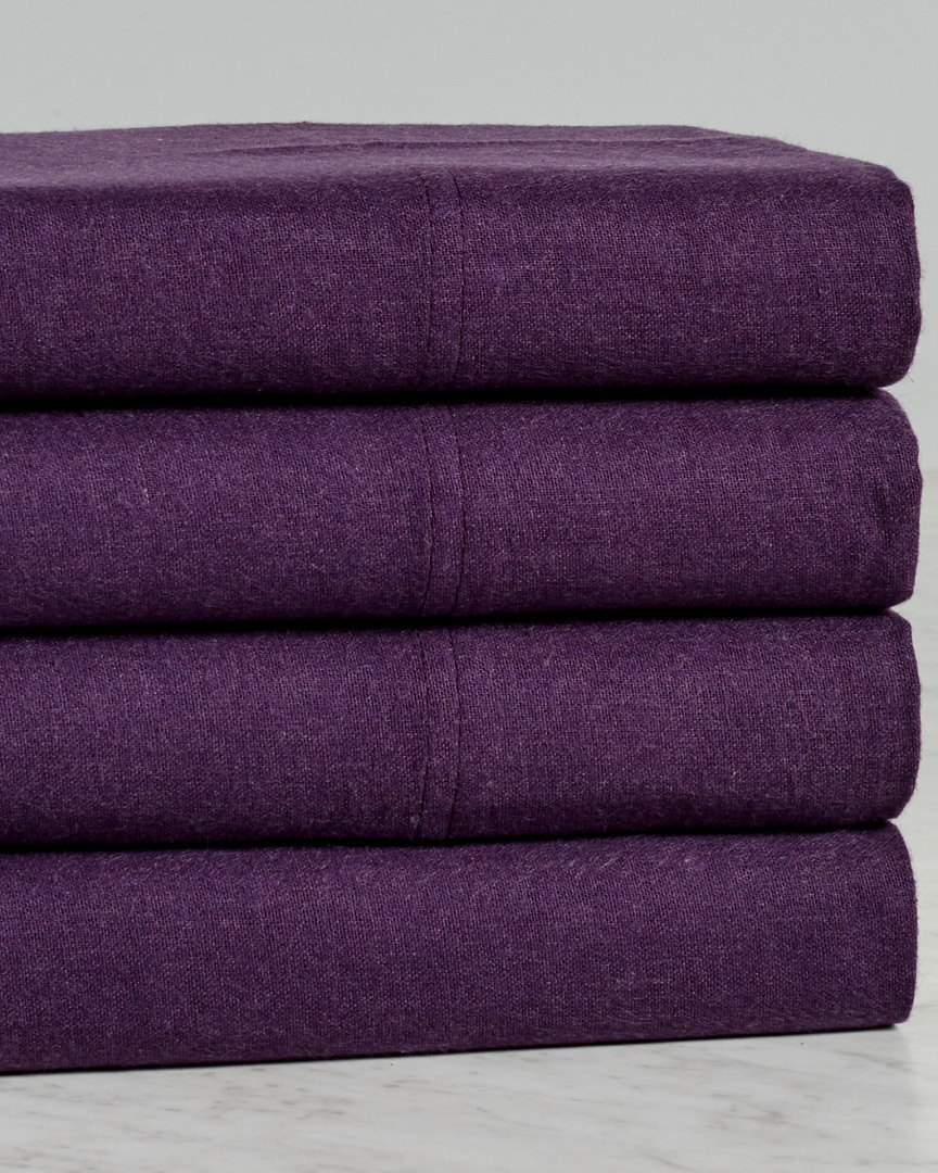 About The Brand: Luxurious Staples For The Bedroom And Bathroom. Color/Pattern: Purple 100% Cotton Flannel Single-Ply Machine Wash Imported Choose From The Following Sizes: Twin: 66In X 96In Flat Sheet 39In X 75In Fitted Sheet With 14In Pocket 20In X 30In Pillowcase Twin Xl: 66In X 100In Flat Sheet 39In X 80In Fitted Sheet With 14In Pocket 20In X 30In Pillowcase Full: 81In X 96In Flat Sheet 54In X 75In Fitted Sheet With 14In Pocket Two 20In X 30In Pillowcases Queen: 90In X 102In Flat Sheet 60In X 80In Fitted Sheet With 14In Pocket Two 20In X 30In Pillowcases King: 108In X 102In Flat Sheet 78In X 80In Fitted Sheet With 14In Pocket Two 20In X 40In Pillowcases Cal King: 108In X 102In Flat Sheet 72In X 84In Fitted Sheet With 14In Pocket Two 20In X 40In Pillowcases