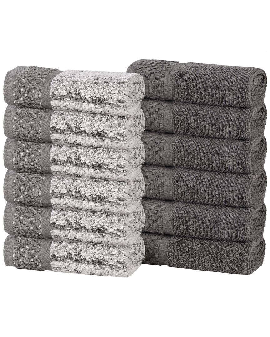 SUPERIOR Set Of 12 Lodie Cotton Plush Jacquard Solid & Two-toned Washcloths In Gray