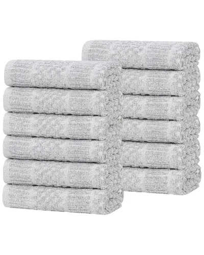 Superior Set Of 12 Naples Medium Weight Solid Washcloths In Gray