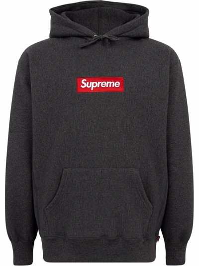 Grey cotton box logo hoodie from SUPREME featuring signature box logo, drawstring hood, front pouch pocket, long sleeves and straight hem. When buying this unisex item, keep in mind that it is graded in standard men's sizing..