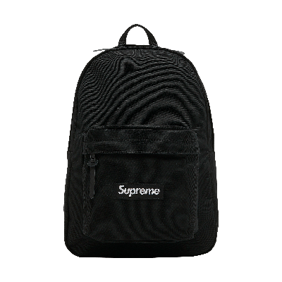 This Supreme backpack from FW21 is a useful carryall that lends itself to a variety of occassions. The accessory is made from black canvas and embroidered with the brand's logo on the front. The roomy main compartment can hold several books and a computer while the zippered front pocket is sized to fit daily essentials.