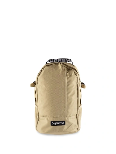 Supplied by a premier sneaker marketplace dealing with unworn, already sold out, in demand rarities. Each product is rigorously inspected by experienced experts guaranteeing authenticity. This Supreme backpack was originally released as a part of the brand's Spring/Summer 2018 collection. It features multiple zipper compartments, pouches and buckles to offer a range of storage solutions. A black Supreme Box Logo is stitched on the front, and a small red BOGO tag is seen on the right strap. A black and white strap with repeated Supreme script wraps around the sides of the bag.