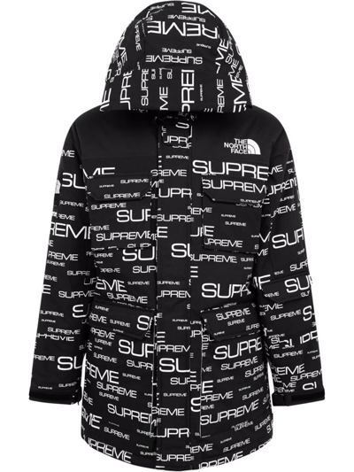 Black feather down x The North Face Coldworks 700-fill fown parka from SUPREME featuring all-over logo print, logo patch at the sleeve, classic hood, concealed front fastening, two chest flap pockets, two front flap pockets, long sleeves and straight hem. When buying this unisex item, keep in mind that it is graded in standard men's sizing..