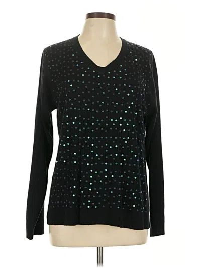 Susan Graver Pullover Sweater, Size: Large. Item Details: Black, Polka Dots Pattern, V Neck, Long Sleeve, Sequins & Rhinestones, Women's Tops, 100% Acrylic