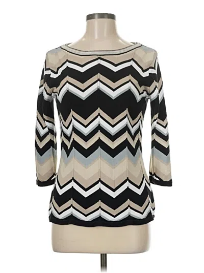 Susan Graver Pullover Sweater, Size: Medium. Item Details: Ivory, Chevron/Herringbone Pattern, Scoop Neck, 3/4 Sleeve, Women's Tops