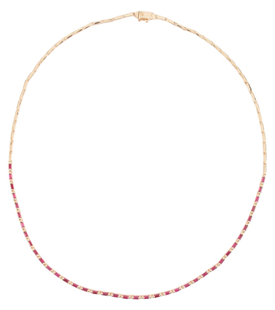 Made from 18kt rose gold, this tennis-style necklace from Suzanne Kalan is encrusted with 2.6ct squared rubies and secures with a clasp fastening.