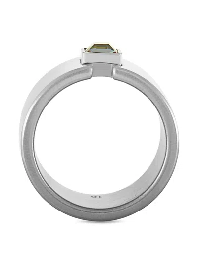 stainless steel brushed finish bezel-set princess-cut crystal chunky band Condition: EXCELLENT. This previously owned item is in near-perfect condition with no signs of damage or use.