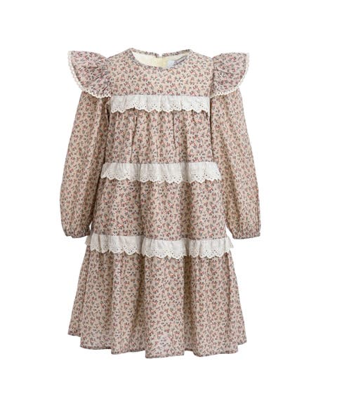 SWEET CACTUS Kids' Floral Lace Tiered Dress In Neutral