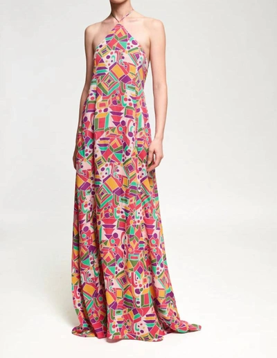 Halterneck Maxi Dress In Miro In Multi